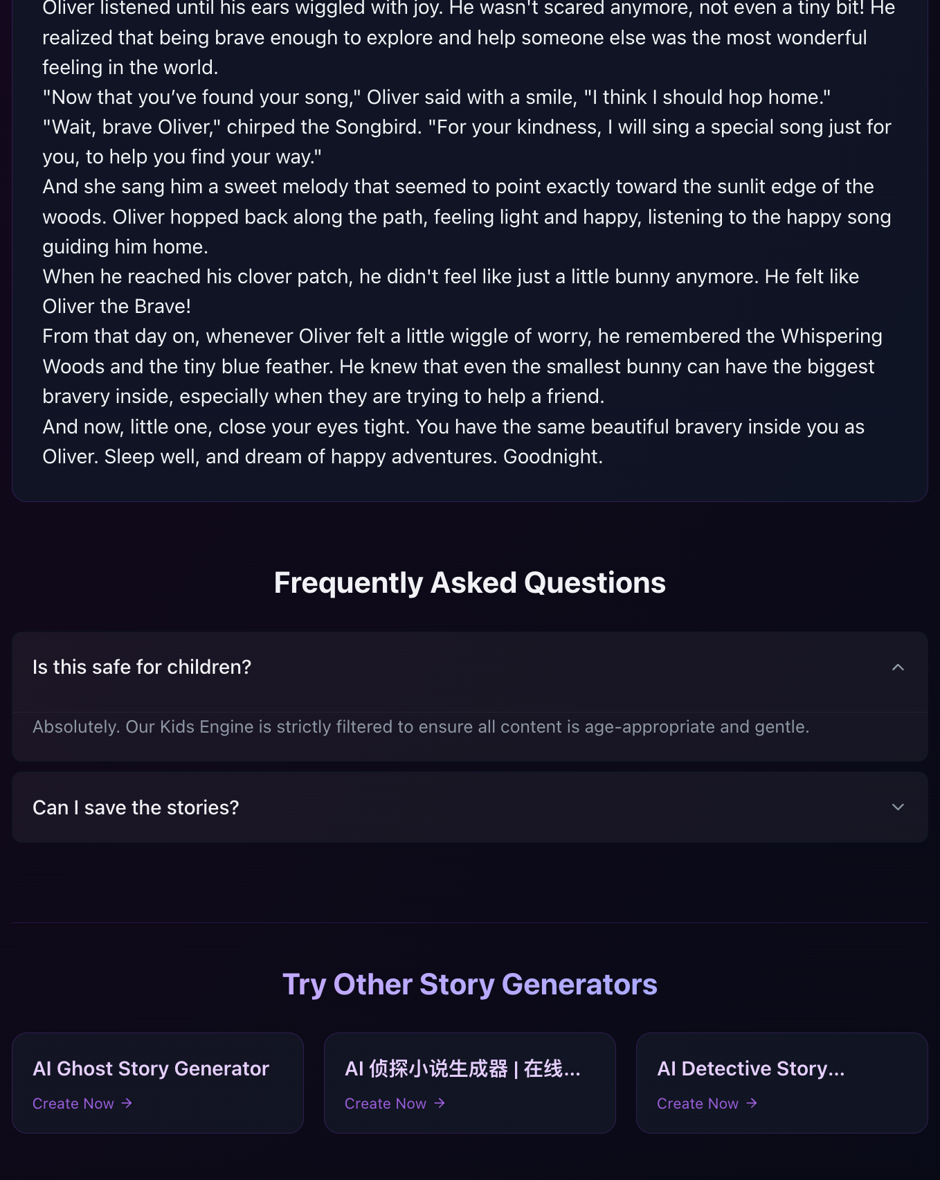Storyn is a lightning-fast AI story generator for writers, educators, and dreamers. Enter a single idea and get a vivid narrative instantly. No sign-ups, no paywalls—just unlimited creative storytelling powered by specialized AI engines.