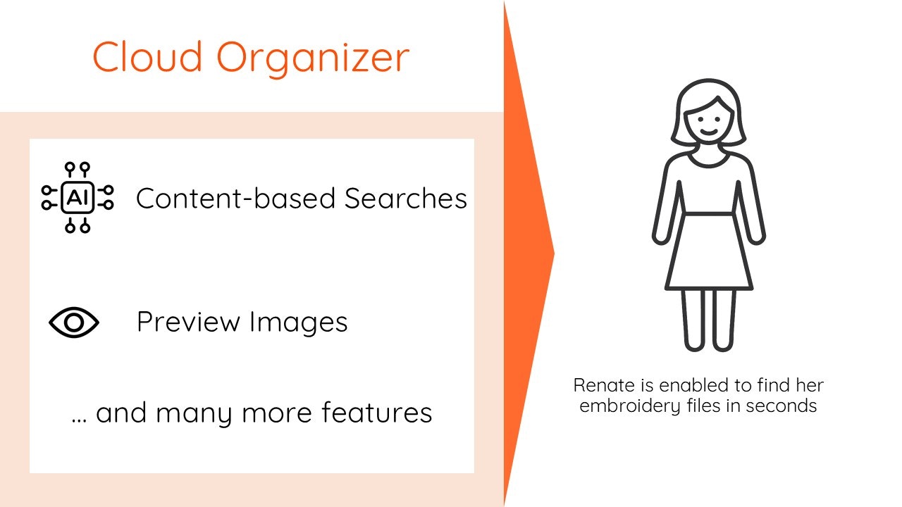 emborado helps you efficiently manage your extensive collection of embroidery files, quickly find the right designs. Find your embroidery files lightning-fast - even without knowing exact file names. See immediately what's behind each filename - without having to open the file. From your first embroidery file to huge collections - emborado grows with your needs.