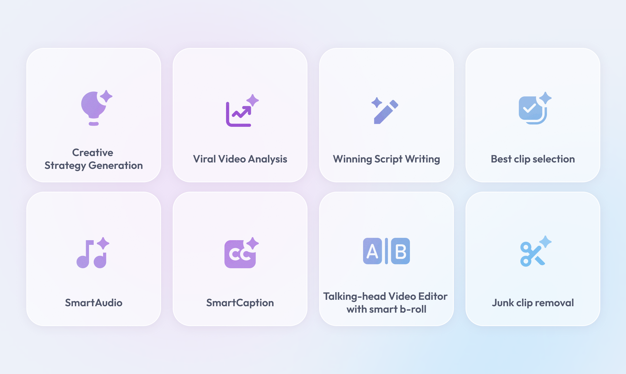 NemoVideo is your AI viral marketing video analyst and recreation engine for affiliate creators, freelancer editors and SMB marketers. It acts as your full creative team: strategist, scriptwriter, and editor—by hunting viral trends, generating similar winning scripts, and automate the heavy lifting of video creation like matching clips selection, junk clips removal, captioning, voiceover.... so you focus on telling powerful stories. Additionally, all can be done through simple conversation.