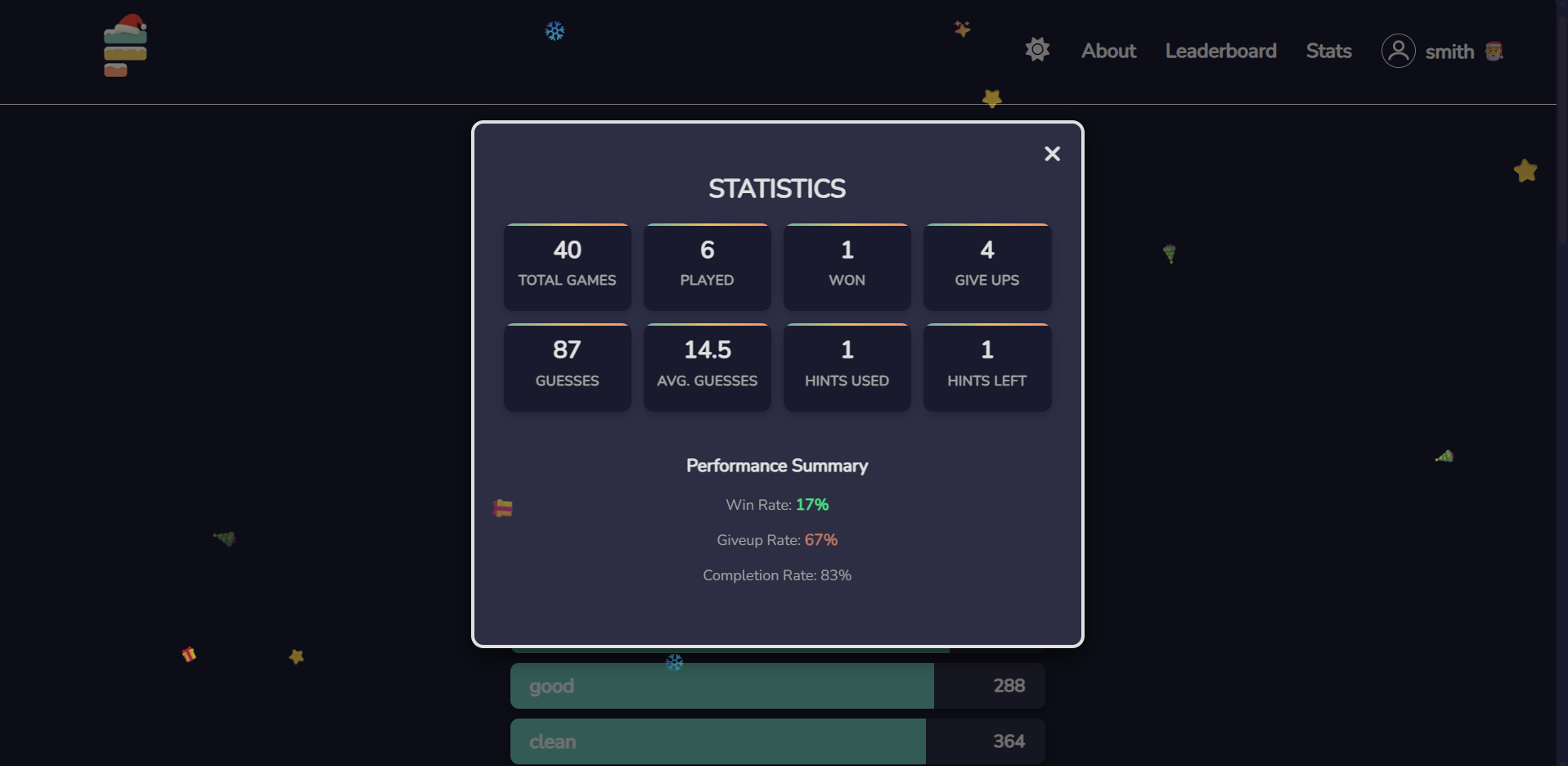 The unlimited attempts feature removes the pressure and lets me actually learn patterns in the AI's similarity algorithm, which is great for improving. Unlike Wordle where you get 6 tries and that's it, this lets you keep guessing until you understand the word associations. The leaderboard ranking motivated me to get better - went from average player to top 15% in my first month. Daily hints are helpful when completely stuck.