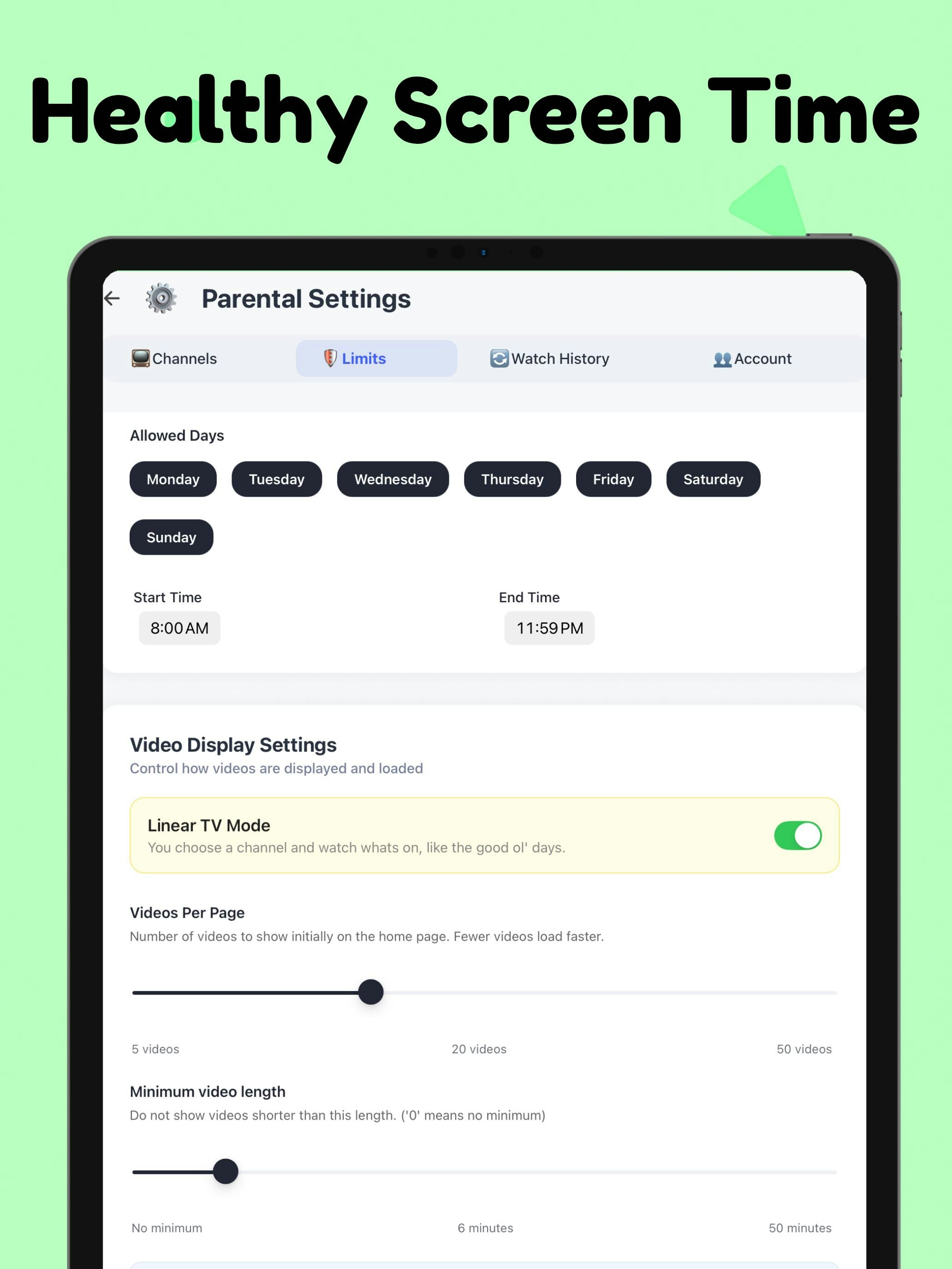 This is exactly what YouTube Kids should have been. I've tested it with 12 different channels over the past 3 weeks and my daughter only sees what I approve. No sneaky recommendations, no autoplay taking her down rabbit holes, just the content I've vetted. The Linear TV Mode has been a game changer for weekend mornings. She turns it on and watches her approved science and art channels without constantly asking me what to watch next. Finally feels like I'm in control of screen time again.
