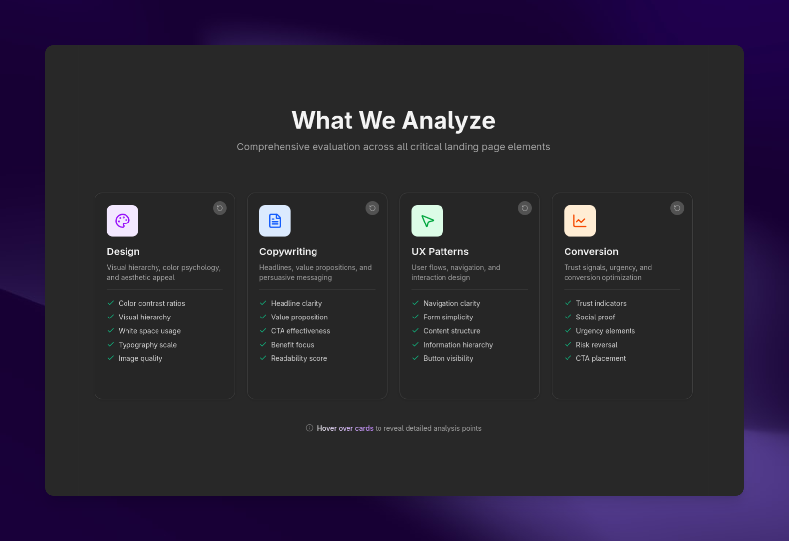 Solid CRO analysis tool. The blunt feedback is refreshing - tells you exactly what's wrong without sugarcoating. Used it on my SaaS landing page and the conversion dimension feedback was spot-on.