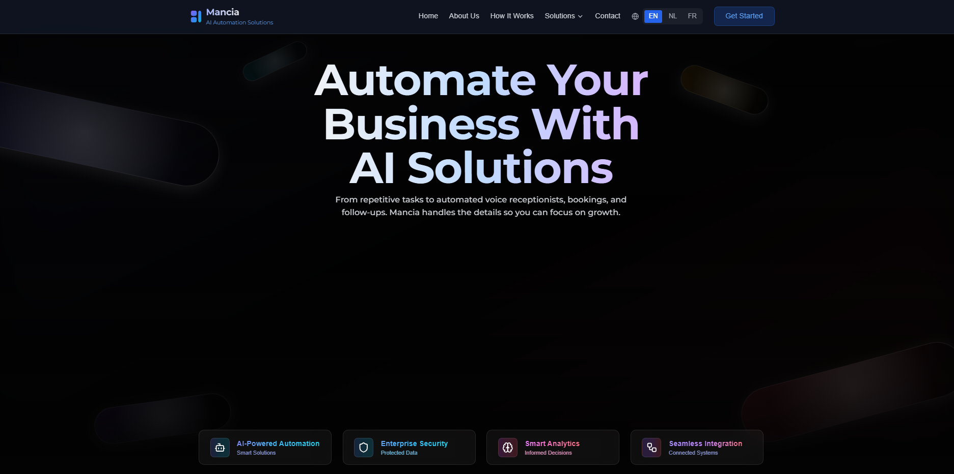 Mancia builds AI powered systems that quietly run the busy parts of your company. We design voice agents, internal apps, websites and email workflows that work together as one flow. Our focus is appointment based businesses like clinics, garages and local service shops that lose time on calls, intake and follow up. Most clients start with one bottleneck, like missed calls or messy forms, and expand into full process automation once they see the results.