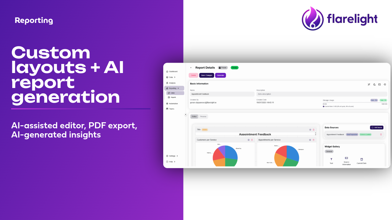 Flarelight is our no-code data platform built for small teams who want clear insights without complex tools. We let you import, prepare, analyze, automate, and report on your data in one place — with AI helping along the way. We launched to give small businesses the power of BI without the enterprise overhead. We’d love your feedback as we continue improving it.