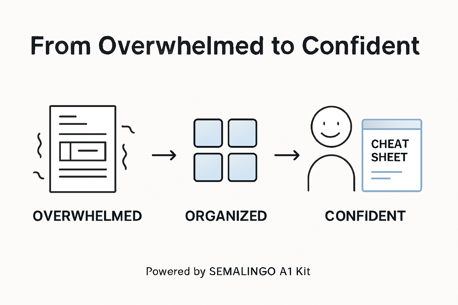 I struggled with endless German grammar rules until I started creating minimalist visual notes. My classmates loved them — and SEMALINGO was born. Turns out, grammar doesn't have to be complicated. It can be visual, simple, and even beautiful.