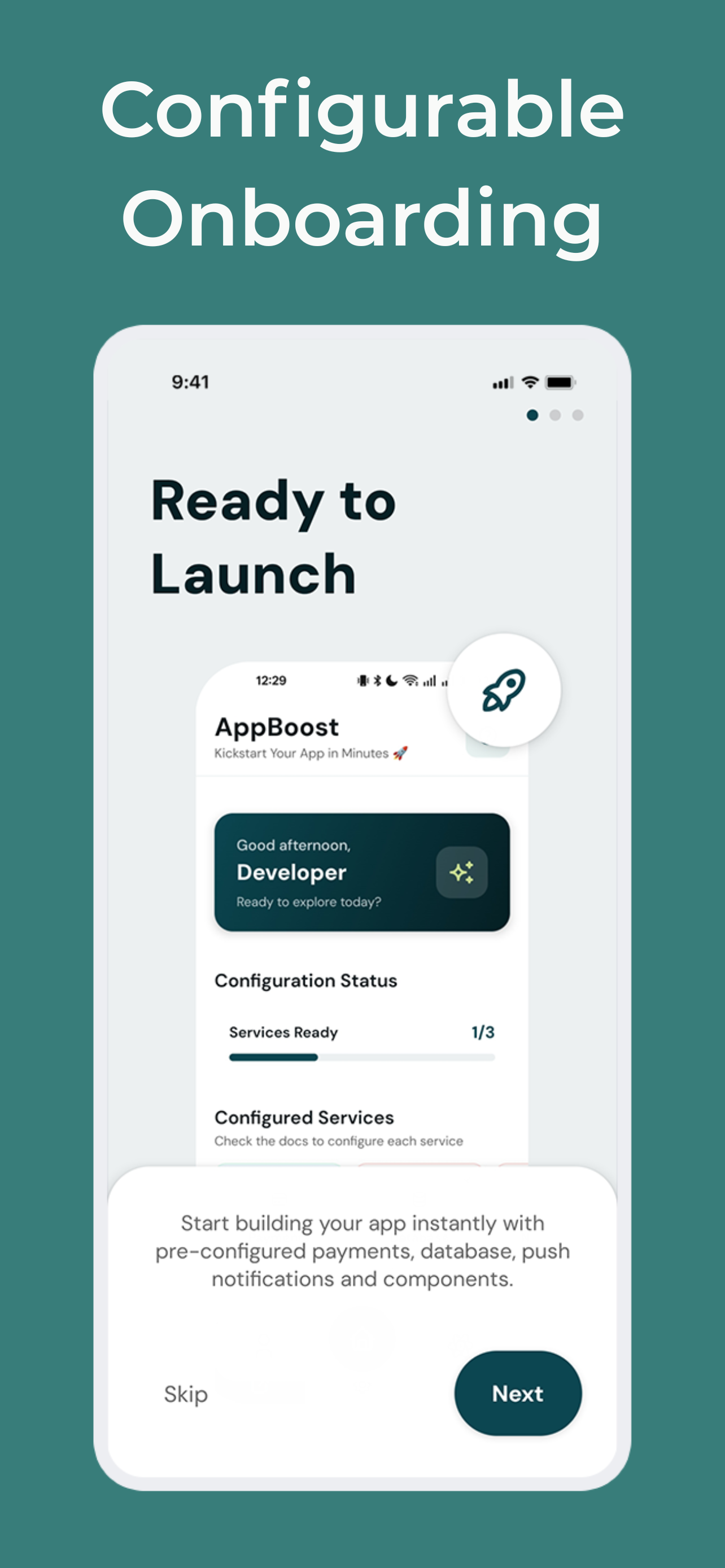 Launch your iOS & Android app in days. Complete React Native boilerplate with authentication, payments, backend, push notifications and UI component library.