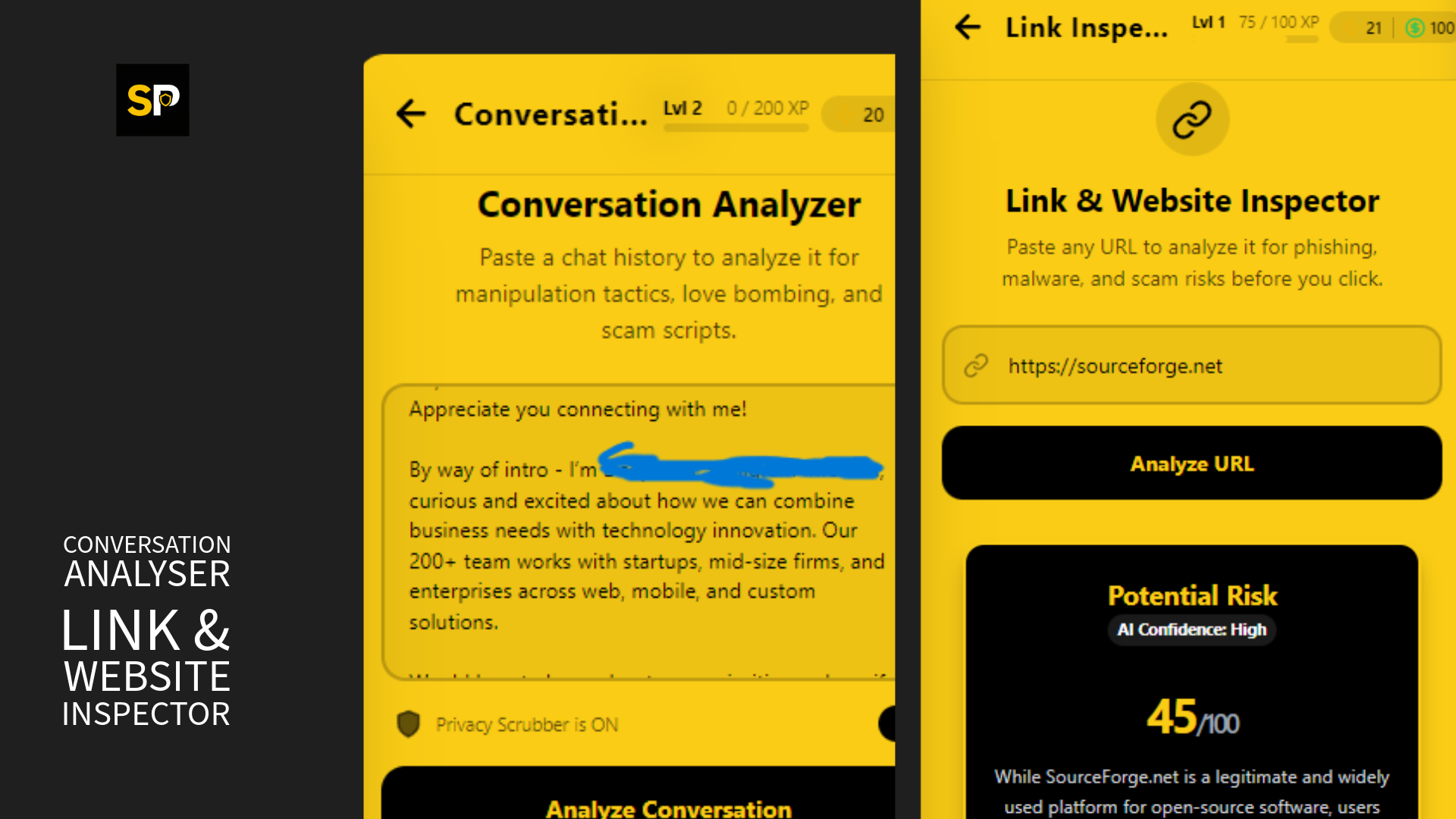 Scampopo is a digital safety tool designed to help people quickly identify scams, phishing attempts, fake profiles, misleading offers, and high-risk online activities. The app analyzes suspicious messages, links, emails, phone numbers, and social profiles to provide a simple Scam Score and clear guidance. Scampopo empowers users to make safer decisions, avoid fraud, and navigate the digital world with confidence.