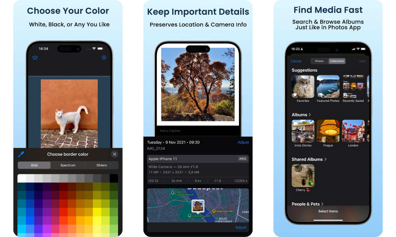 Simple Border lets you frame photos and videos in square, 4:5, and other ratios without cropping. It keeps full image quality by adding borders, preserves location and camera metadata, and includes a native picker and share menu to send photos directly to Instagram. You can choose any border color, and the premium version lets you process up to 10 items at once.