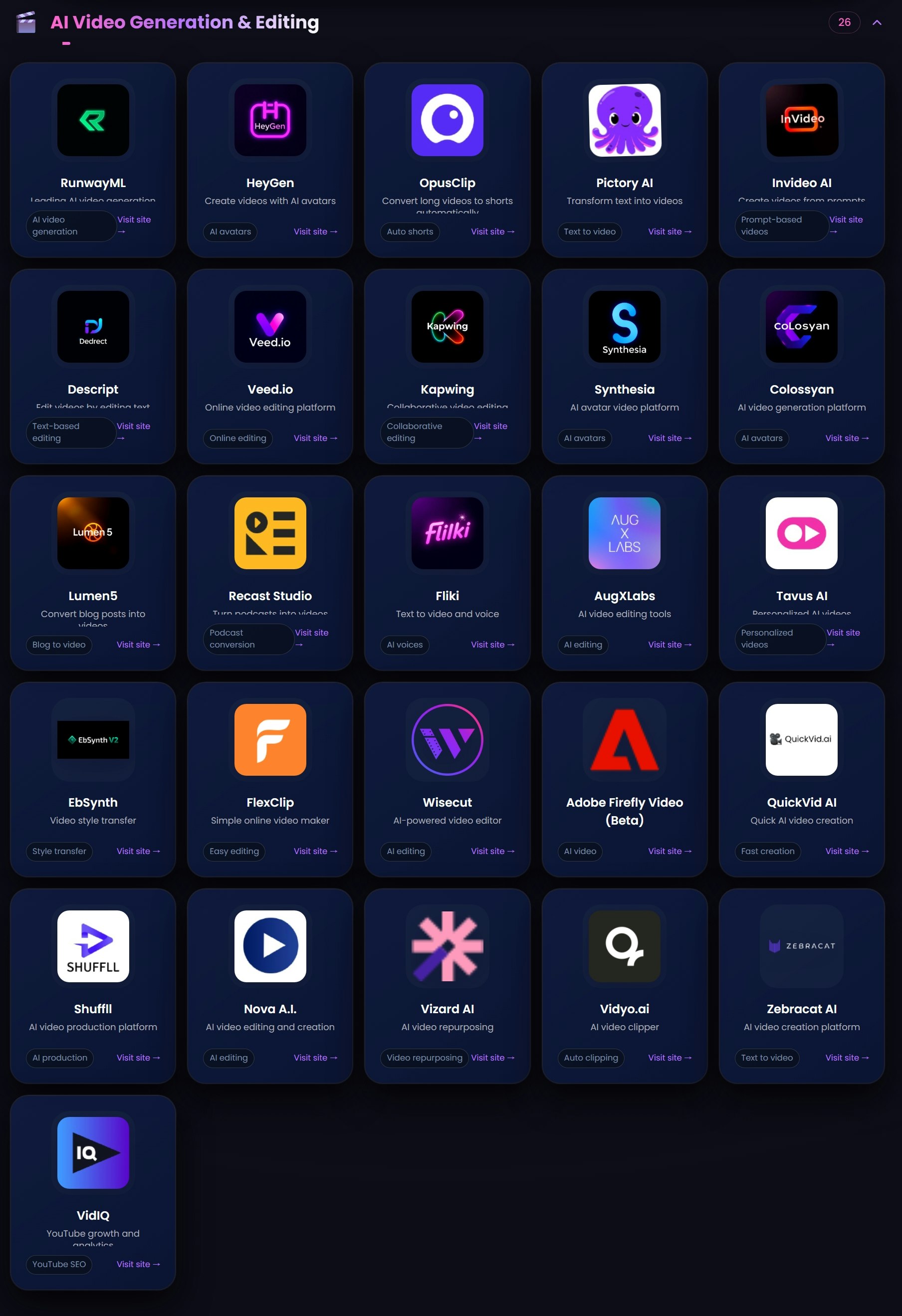 A clean, fast directory of 200+ AI tools — no login, no ads.