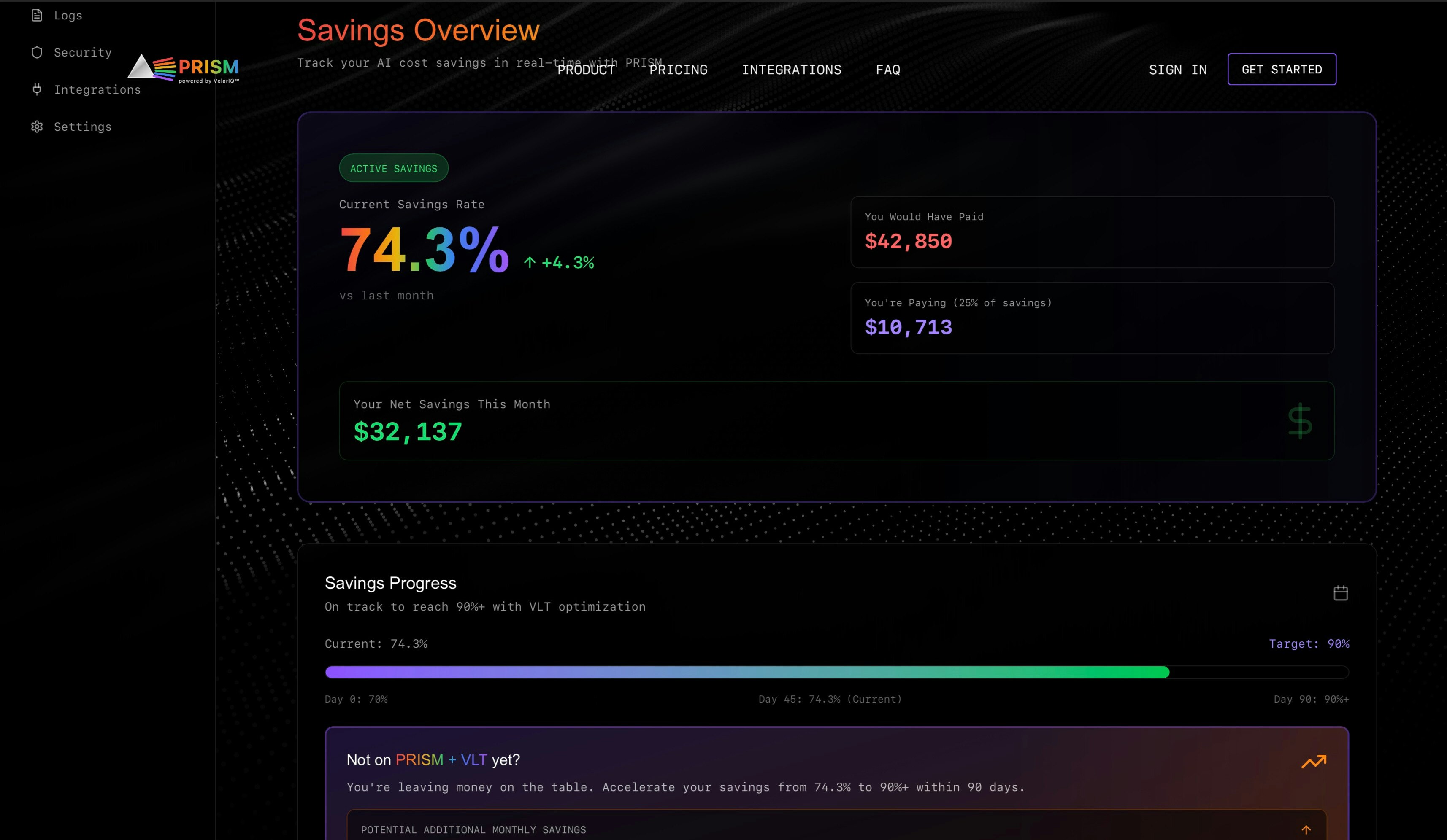 The first AI system you can actually trust—with pricing to match. PRISM delivers zero hallucinations, always-current knowledge, and 70-97% cost reduction. You pay just 25% of verified savings (want >70% savings? Let's talk). No upfront costs, no risk. If we don't save you money, you pay nothing. Validated in binary-testable domains, scaling to all enterprise applications. Patent-pending architecture, universal licensing potential. Acquisition discussions underway with tier-1 tech companies."