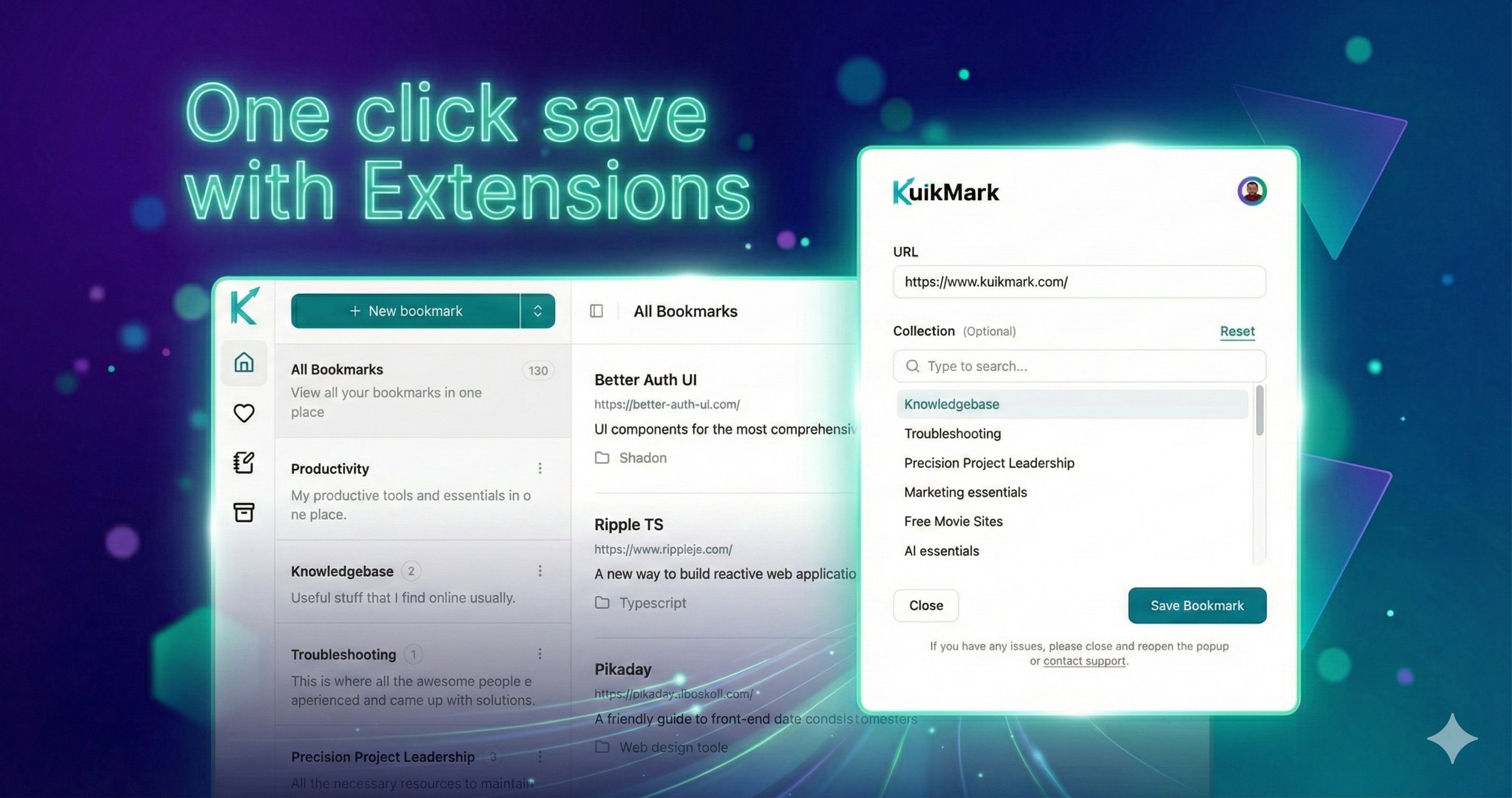 Kuikmark makes saving and finding links effortless. Unlike other bookmark tools, it combines notes, smart collections, and deep search in one clean space. Add context beside your links, share collections in a click with public, and stay organized without clutter. Built for speed, privacy, and focus—Kuikmark helps you save ideas fast and get back to what matters. Beautifully designed with dark mode support. You would enjoy Kuikmark and keeping your best links just a click away.