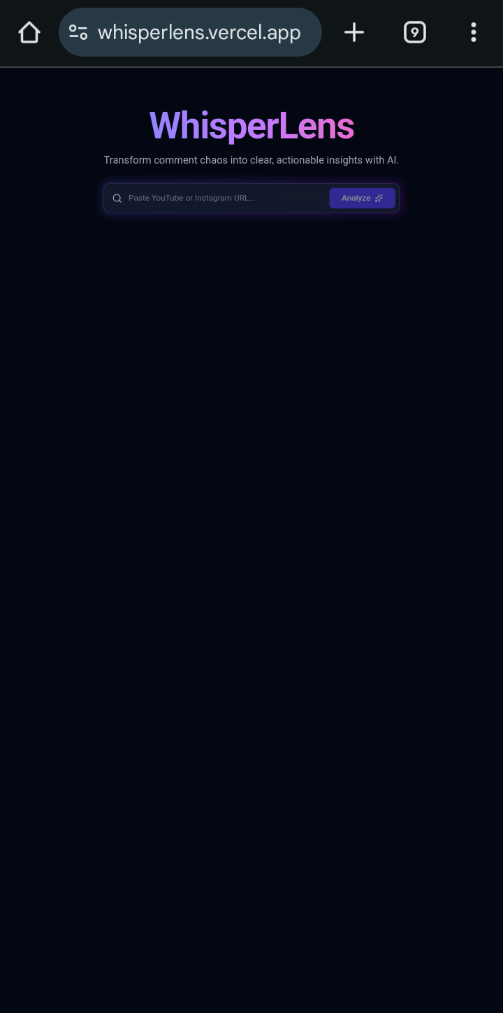 WhisperLens helps creators instantly surface the important comments buried under spam and noise on YouTube and Instagram. Instead of scrolling through thousands of low-value comments, it highlights meaningful feedback, questions, ideas, and opportunities that impact growth. No login, no setup—just paste a link and get clarity. Stop missing what your audience is really saying and turn comments into direction.