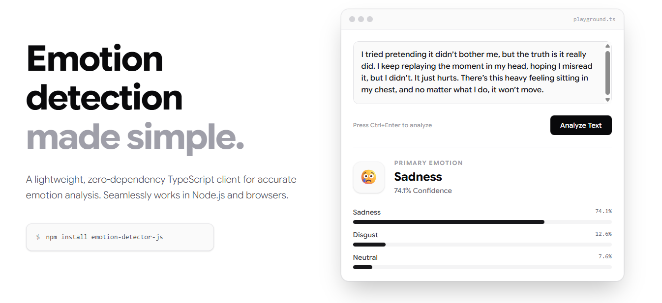 Analyze the emotional tone of any text using advanced AI. Detect joy, sadness, anger, fear, surprise, disgust, and neutral emotions with confidence scores. Free, fast, and accurate emotion detection powered by DistilRoBERTa.