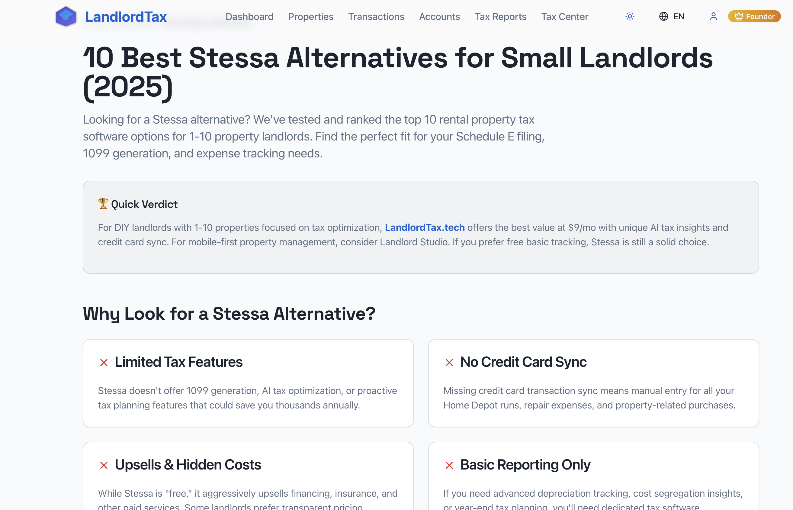 AI tax software for landlords with 1-10 properties. Features: ✅ AI Year-End Planning - "Complete $5K repair before Dec 31 to save $1,250" ✅ Credit Card Sync - Auto-track expenses ✅ Unlimited 1099 Generation ✅ Smart Schedule E Export - AI-reviewed ✅ OCR Receipt Scanning - 95% accuracy Unlike Stessa (no tax tools) or RentRedi ($9/property), we're $9/month flat with AI optimization. For DIY landlords filing their own taxes or working with CPAs.