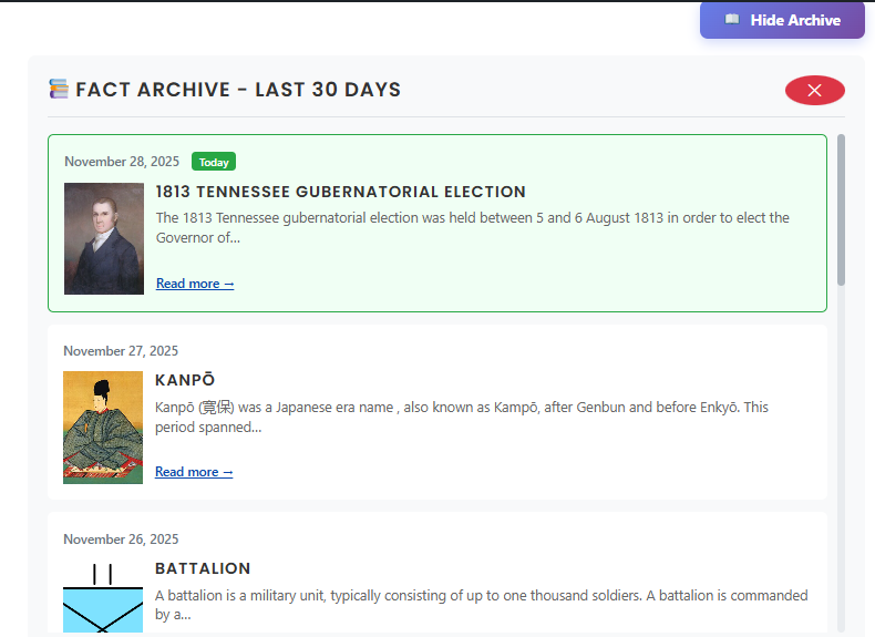 Discover a new fact every day with Daily Random Facts — updated every 24 hours with images, summaries, and a 30-day archive.