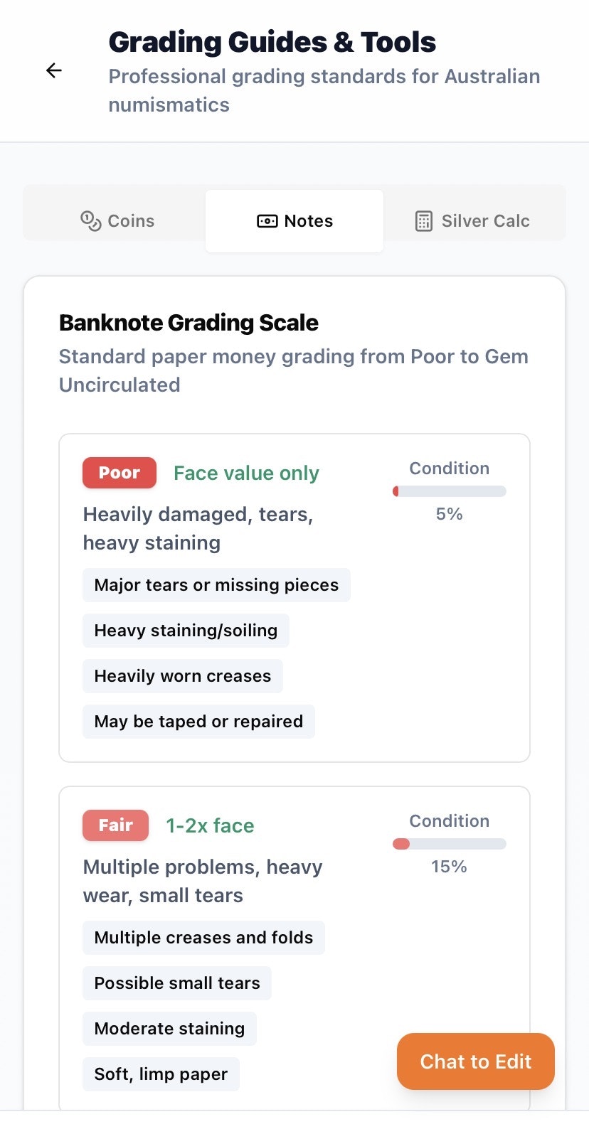 Ur app for identifying, grading, valuing AUS currencies